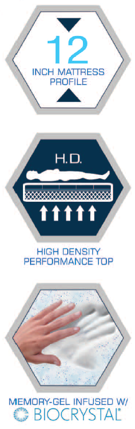 Biocrystal: A powerful crystal combination scientifically proven to impact the user’s well-being & energy level. Sleeping, sitting or resting on Biocrystal revitalizes the body, providing the quality rest needed to perform well all day. The user’s body is recharged & renewed – better able to keep up with an active lifestyle. Biocrystal promotes proper cell function to relieve stress, improve relaxation and increase energy for improved performance. - Progressive Support Comfort Layer: For superior pressure reduced support & alignment on all upper and lower extremities. Contours to the body for even weight distribution to eliminate pressure points.