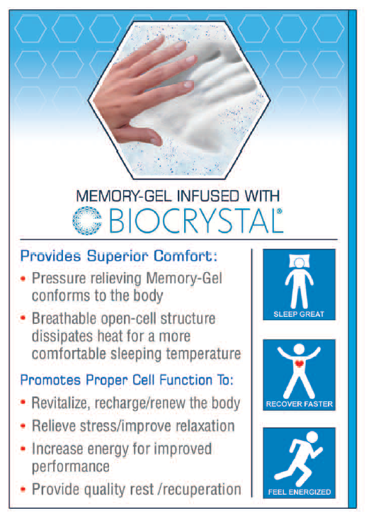 - Memory-Gel Infused With Biocrystal Comfort Layer: