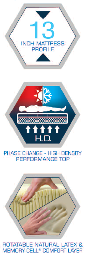 Natural Latex: Gently contours to the body for reduced pressure and proper full body comfort & support. Self ventilating, breathable Pin Core design or ultimate air flow & temperature neutral sleep. Inherently anti-microbial and dust mite resistant. Absorbs energy and motion to reduce partner disturbance.