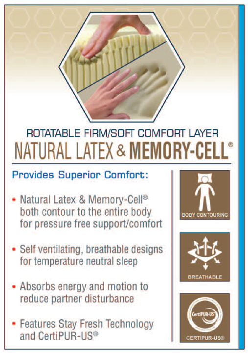 - Rotatable Natural Latex & Memory-Cell (Progressive 2-Stage Firm/Soft) Comfort Layer: